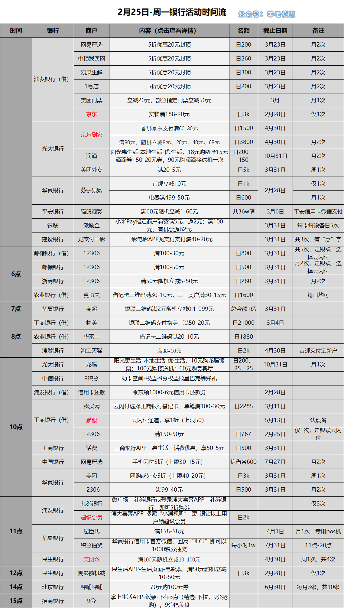 》》特别关注:2月21日信用卡羊毛汇总 光大X京东到家满60-30元《《